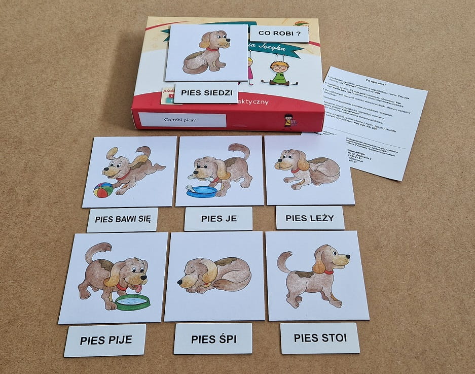 Wybierz zestaw co robi pies? i otwórz przed swoim dzieckiem świat pełen słów i ciekawych czynności.