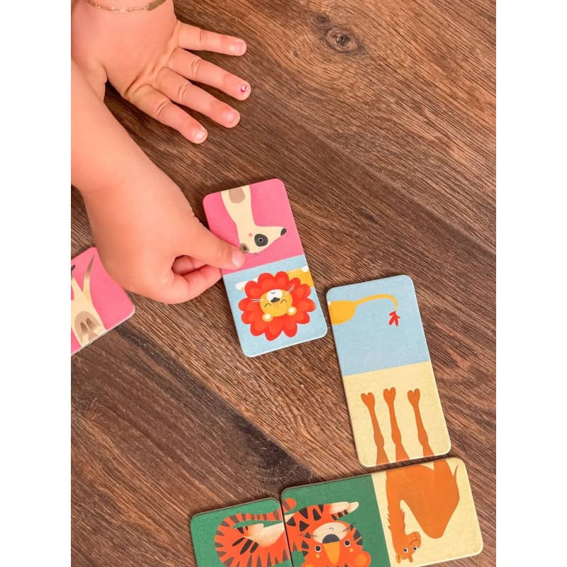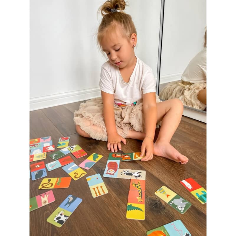 Domino Jakie to zwierzę Kapitan Nauka to propozycja na wspólną grę z dzieckiem, układanie, dopasowywanie to dobry trening motoryki małej, ściśle powiązanej z rozwojem mowy u dzieci. Warto ćwiczyć umiejętności motoryczne dzieci!