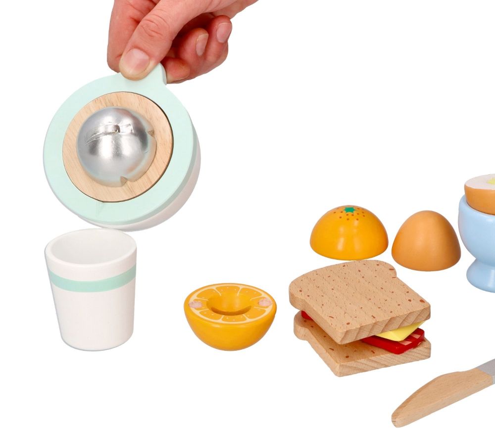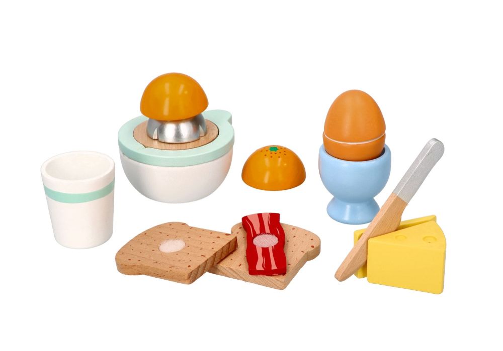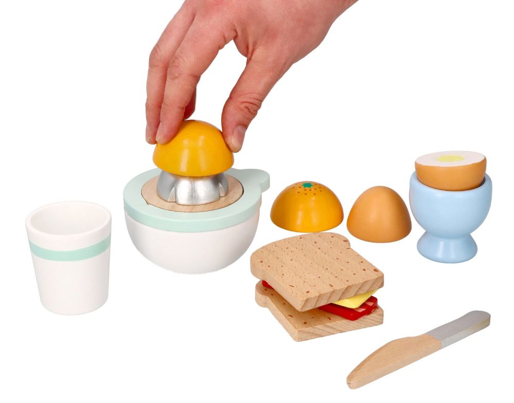Dzień dobry! Czas na pyszne i zdrowe śniadanie! Ten uroczy, 10-elementowy zestaw drewniany to idealny sposób na wprowadzenie najmłodszych w świat zdrowych nawyków żywieniowych poprzez zabawę. Twoje dziecko może teraz samodzielnie przygotować poranny posiłek, serwując chrupiące tosty, jajko na miękko i świeżo wyciskany sok z pomarańczy.