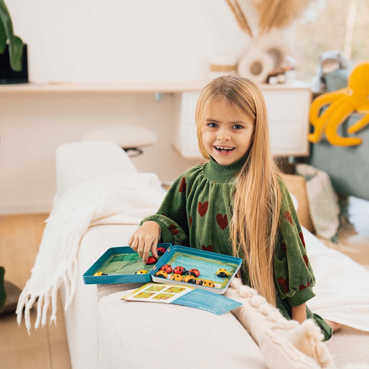 Gra jest zamknięta w poręcznym, metalowym pudełku, co sprawia, że jest to doskonały kompan każdej podróży. Magnetyczne elementy gwarantują, że żadna biedronka nie zgubi się podczas zabawy w samochodzie czy pociągu. To świetny sposób na rozwijanie logicznego myślenia i spostrzegawczości u dzieci powyżej 6. roku życia.
