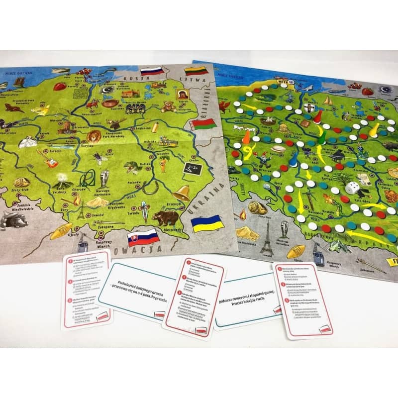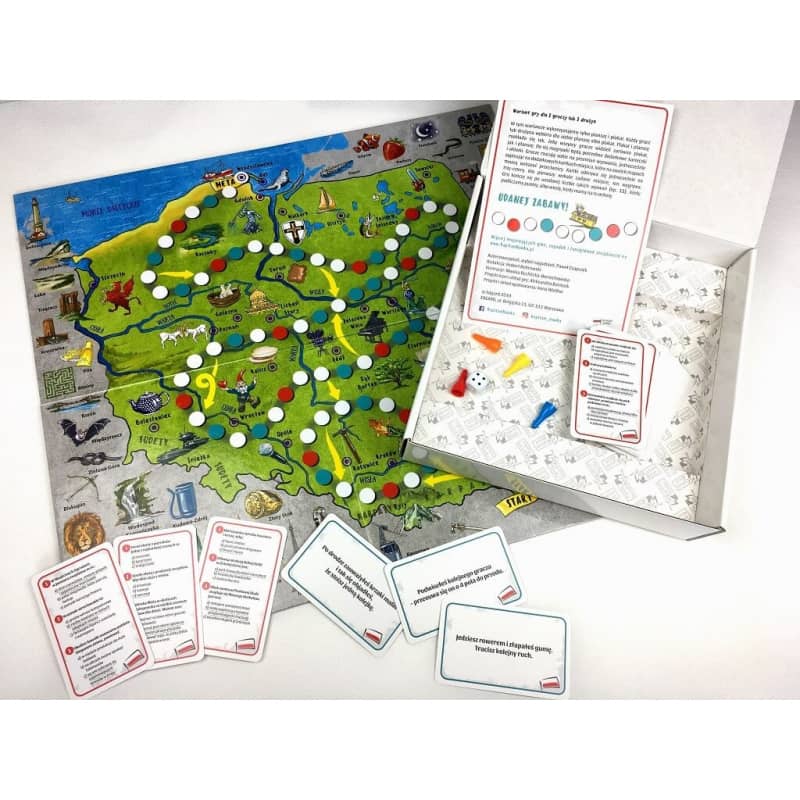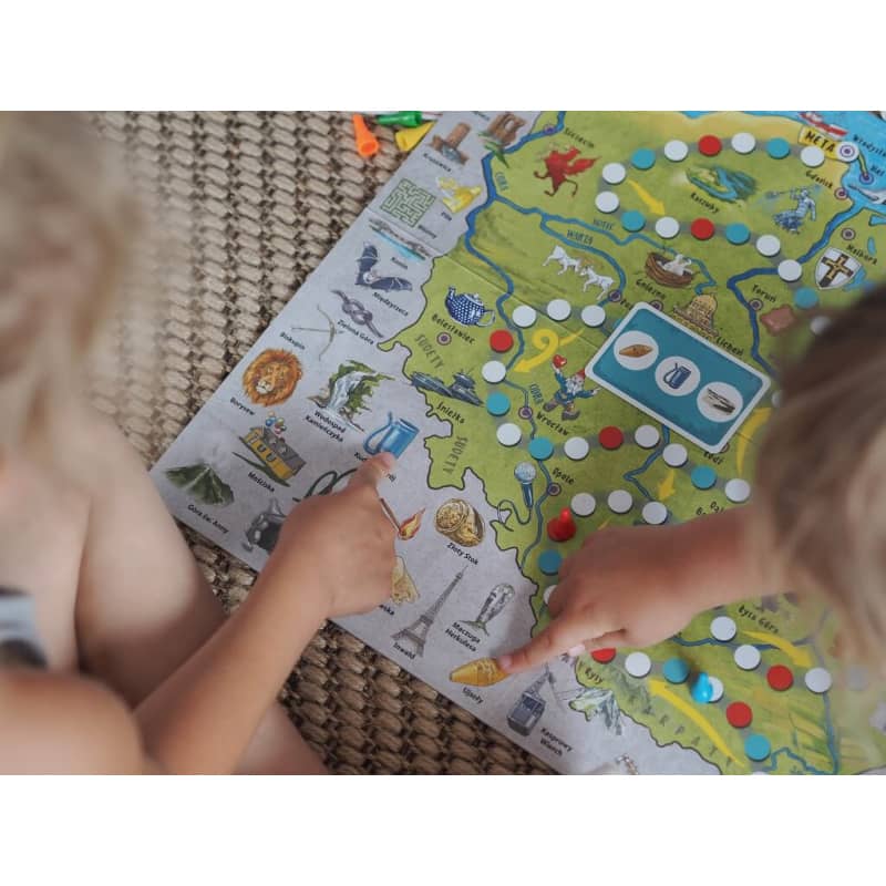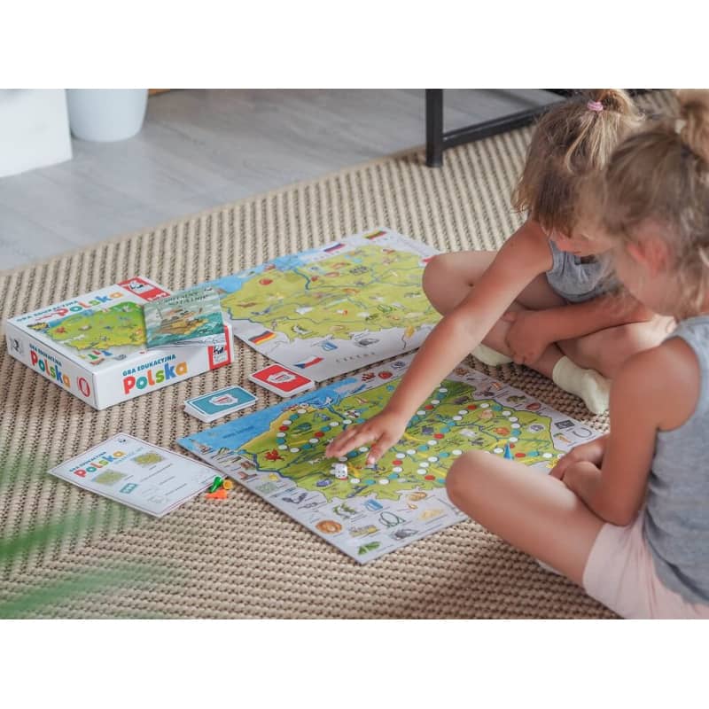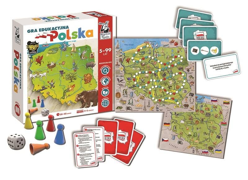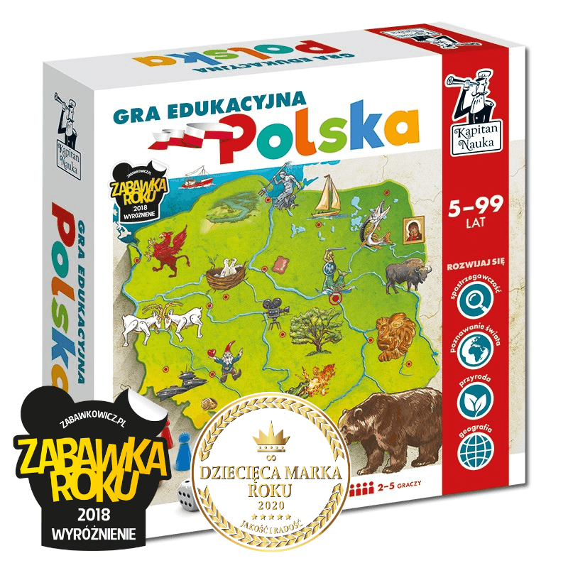 Przebieg gry skutecznie zachęca dzieci do wspólnego rodzinnego podróżowania. Dzieci poznają ciekawostki geograficzne z różnych regionów kraju, historię, tajemnice i zabytki miast. Gra edukacyjna Polska to nowe wydanie bestsellera sprzedażowego wydawnictwa Kapitan Nauka. W naszej ofercie inspirujące gry edukacyjne i planszowe.