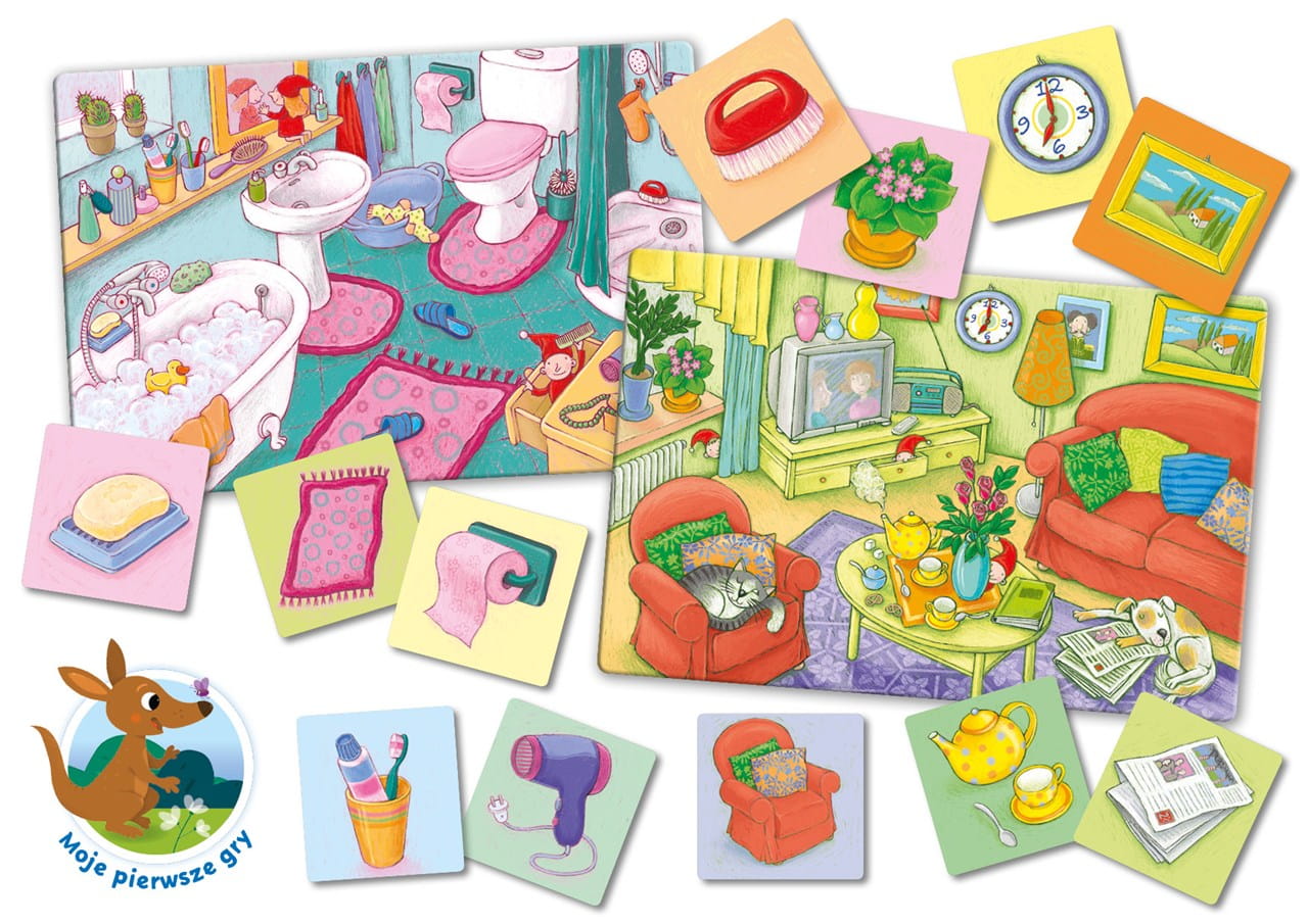 Przebieg rozgrywki: wybierzcie planszę pokoju. Osoba prowadząca grę losuje obrazek z pudełka i pyta, do którego z uczestników zabawy należy widniejący na nim przedmiot. Gracz, który znajdzie na swojej planszy poszukiwany element, bierze obrazek i układa go na swojej planszy. Zwycięża osoba, która jako pierwsza ułoży wszystkie pasujące obrazki na swojej planszy.