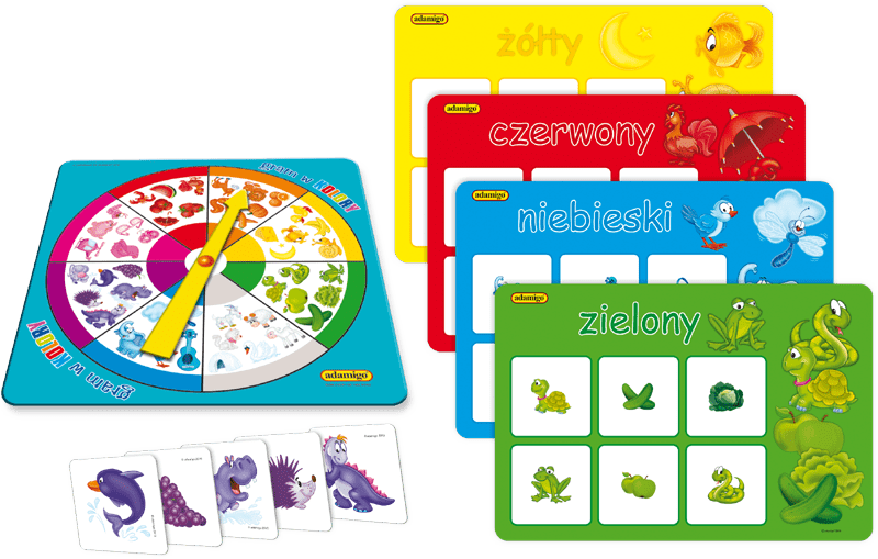 W zestawie gry do nauki kolorów Adamigo