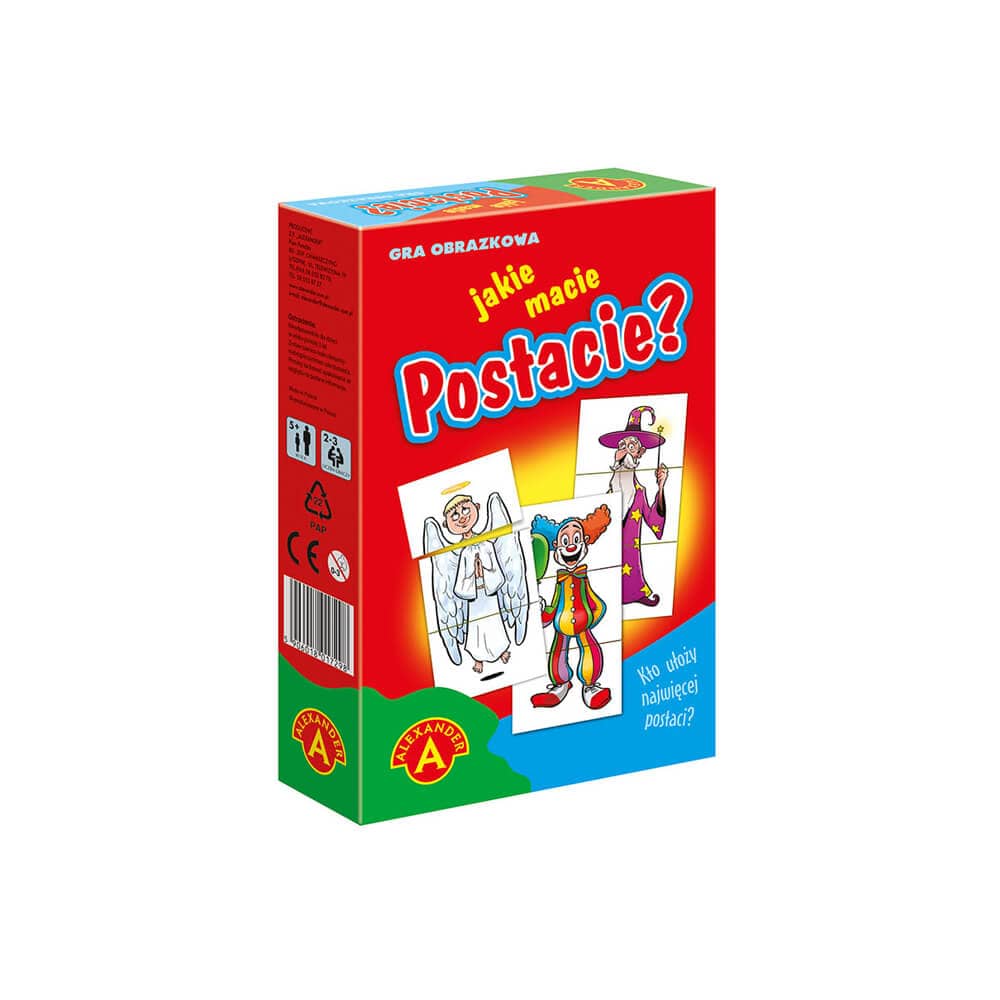 Niewielka wielkość pudełka gry Jakie to postacie Alexander umożliwia wygodne zabranie jej na urlop, w podróż do samochodu czy pociągu jak i na podwórko, aby tam grać z rówieśnikami.