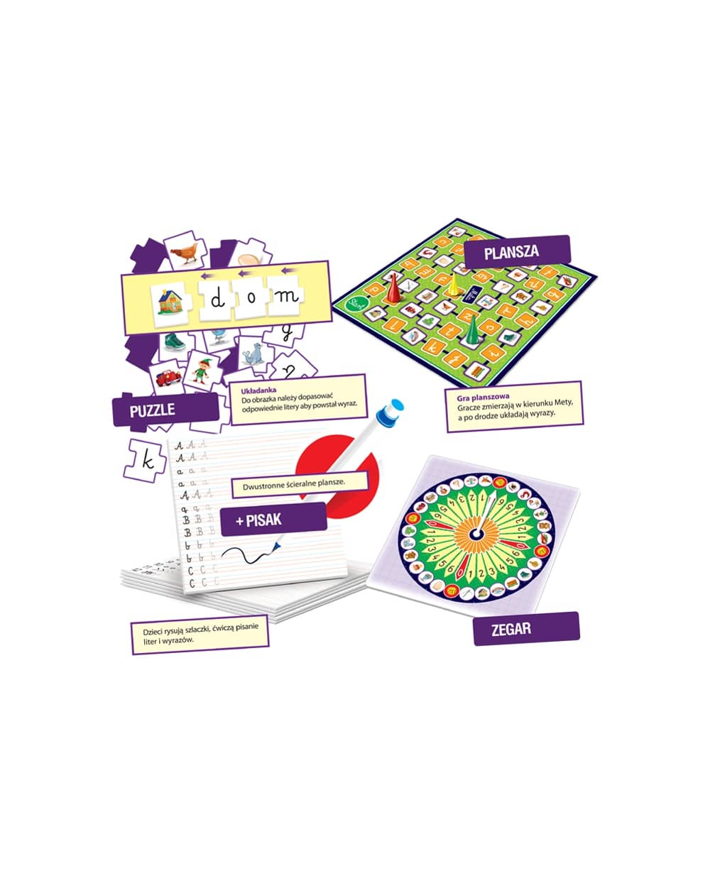 Podczas gry uczestnicy będą wykonywać różnorodne zadania, takie jak tworzenie wyrazów, dopasowywanie liter do obrazków oraz ćwiczenie kaligrafii na specjalnych planszach.