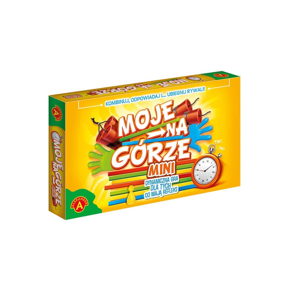 Gra rodzinna Moje na górze mini Alexander zapakowana jest w tekturowe, kolorowe i estetyczne pudełko w rozmiarze 18 x 11 x 3,5 cm.