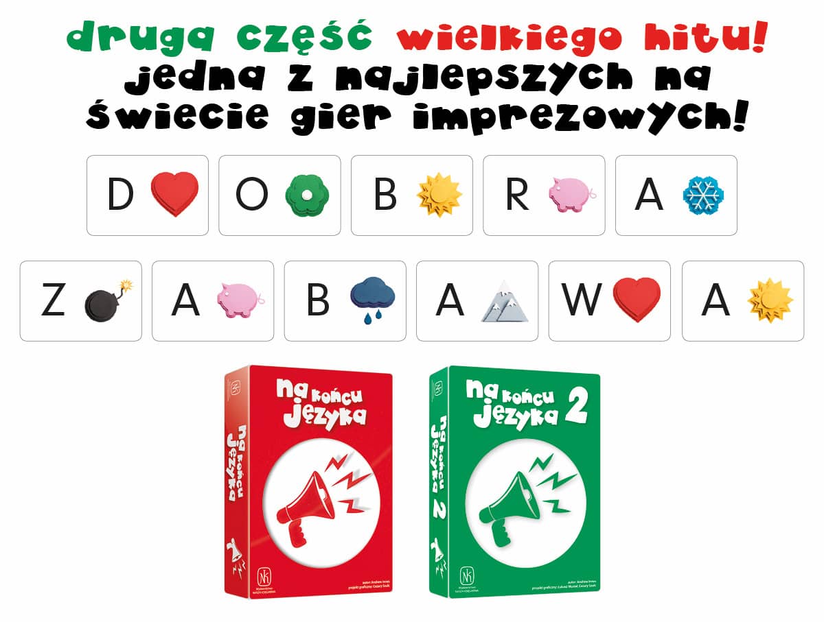 Na końcu języka 2 to dynamiczna, imprezowa gra karciana, która stanowi kontynuację bestsellerowej serii od wydawnictwa Nasza Księgarnia. To idealna propozycja dla każdego, kto szuka szybkiej i wciągającej rozrywki na spotkania z przyjaciółmi lub rodzinne wieczory. W tej wersji, zamiast podawania słów z kategorii, gracze muszą jak najszybciej znaleźć słowo, które zawiera litery z kart przeciwników. Bądź szybszy od rywali, by wygrać pojedynek i zebrać jak najwięcej kart! To idealna gra integracyjna, która rozrusza każde towarzystwo. Dzięki 3 poziomom trudności, gra dopasuje się do umiejętności zarówno młodszych, jak i starszych graczy. To doskonała gra rodzinna, która łączy pokolenia.