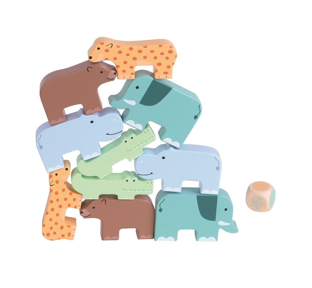Zestaw zawiera 10 figurek zwierząt wykonanych starannie, aby zabawa dziecka była w pełni bezpieczna oraz kostkę wskazującą kolejność układania.
