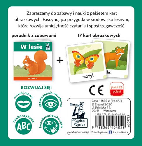 Karty obrazkowe W lesie Kapitan Nauka dedykowane są już dla dzieci powyżej roku - 1+.