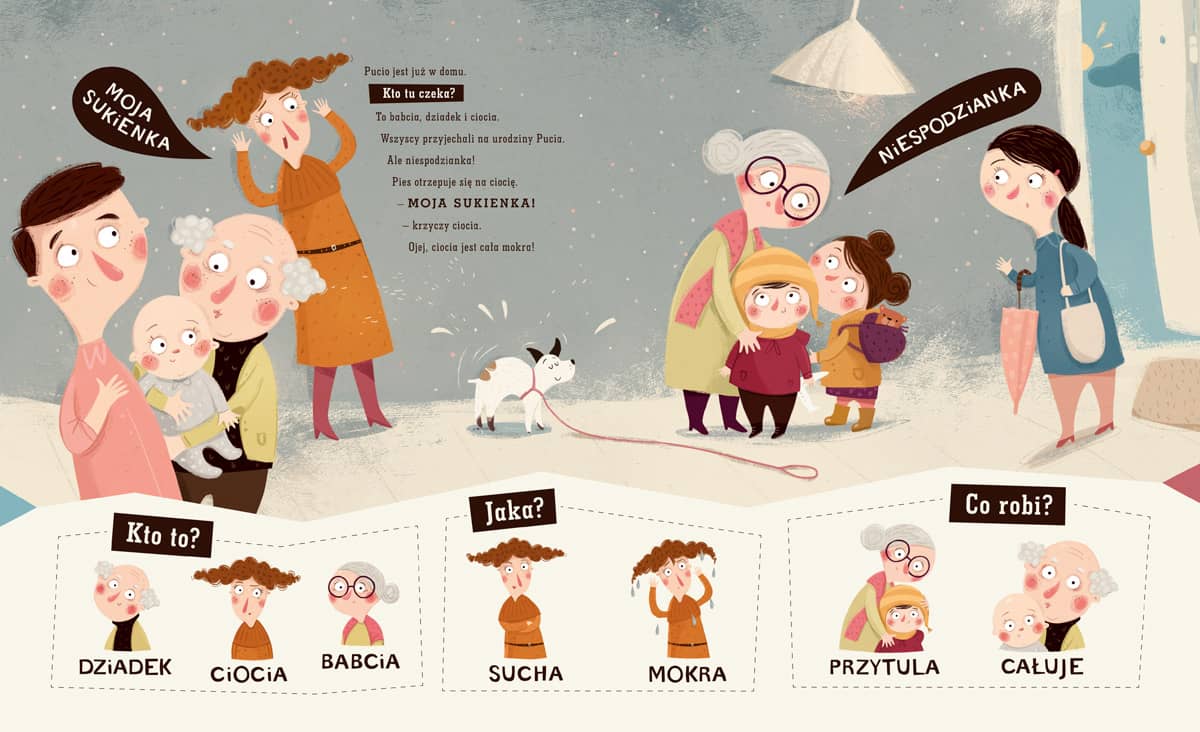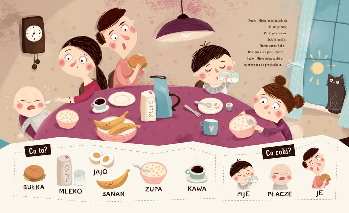 - Wczesna nauka czytania: dla starszych dzieci książka staje się doskonałym materiałem do pierwszych prób samodzielnego czytania (metodą globalną).