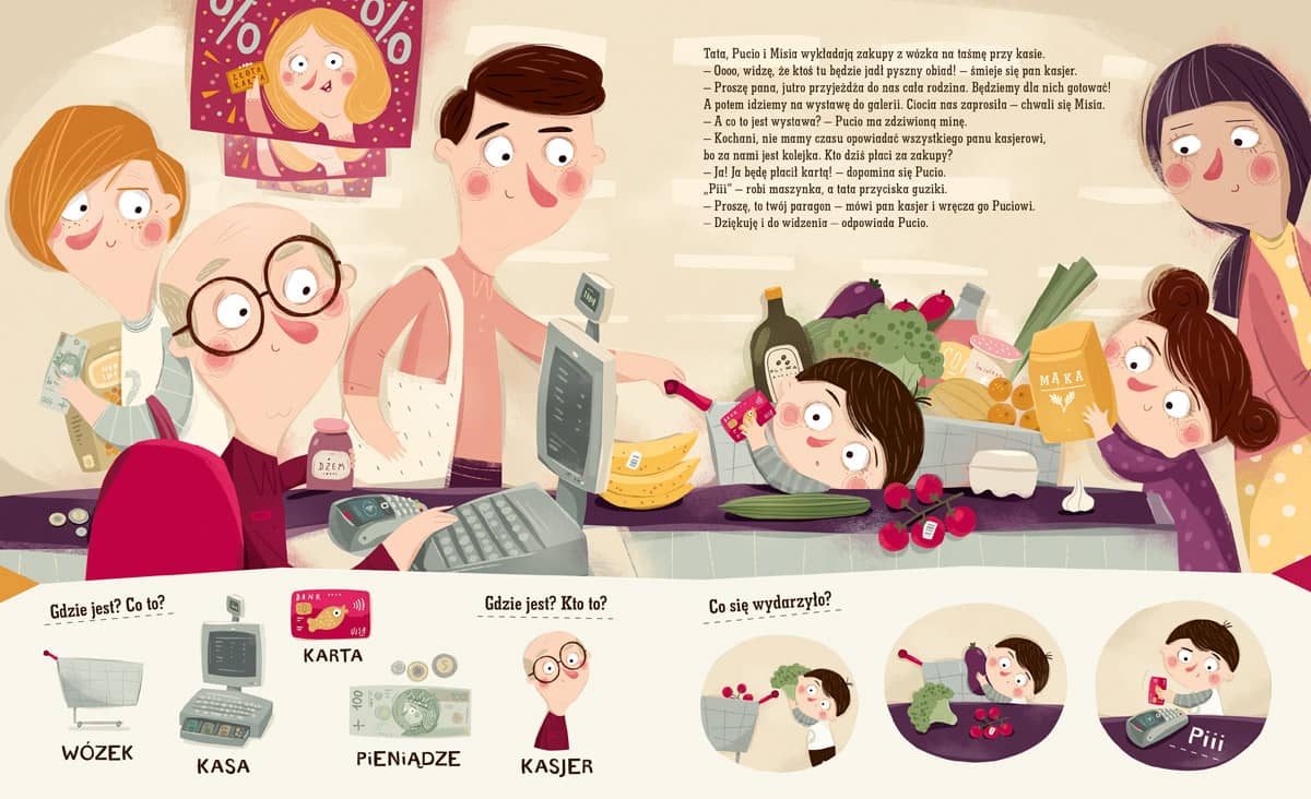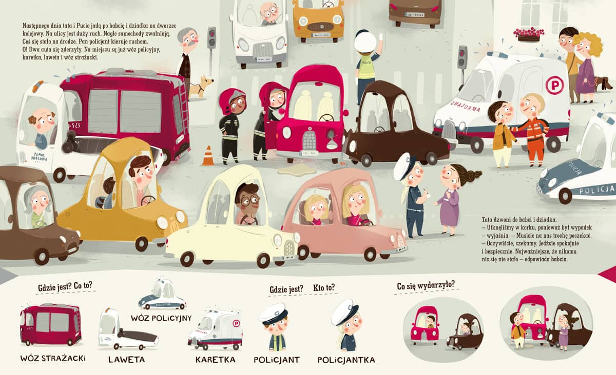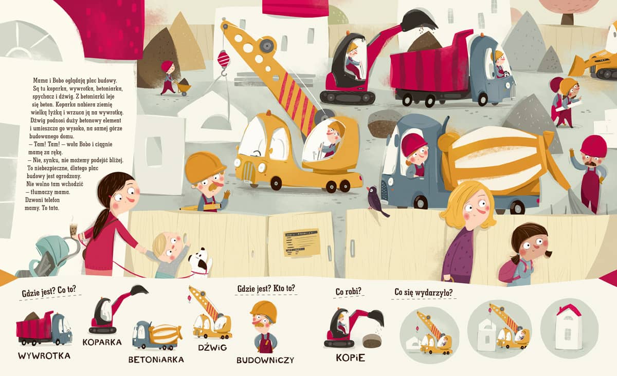 Bogactwo słownictwa: książka w naturalny sposób wprowadza nazwy nowych obiektów, zawodów i czynności, z którymi dziecko styka się w przestrzeni miejskiej.