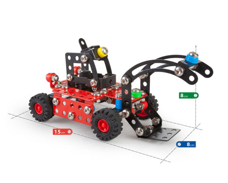W pudełku znajdują się 194 elementy wykonane z solidnych materiałów, dzięki czemu po złożeniu pojazd jest wytrzymały i doskonale sprawdzi się podczas dalszej zabawy.