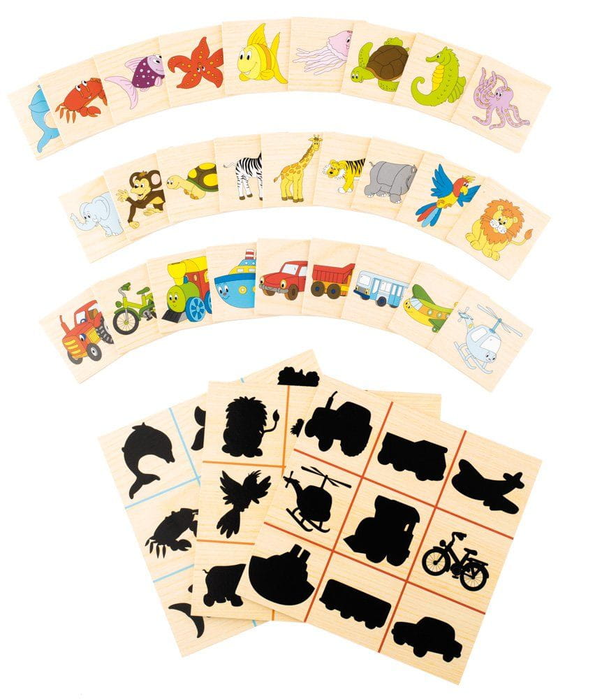 Układanka Cienie wykonana jest z drewna co w odróżnieniu od podobnych papierowych propozycji zapewni bezpieczne i długotrwałem użytkowanie.