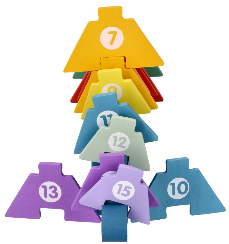 - nauka liczenia i cyfr: układanie kolorowych elementów w kolejności numerycznej od 1 do 15 w naturalny sposób wprowadza dziecko w świat matematyki.