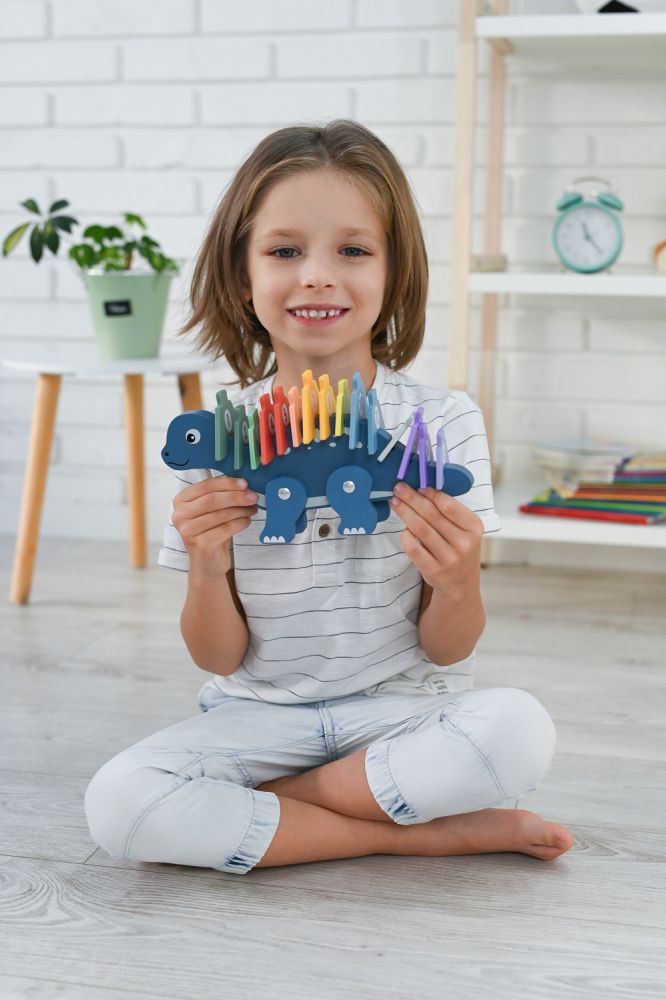 Przedstawiamy Państwu fantastyczną zabawkę edukacyjną, która podbije serce każdego małego miłośnika dinozaurów – drewniany dinozaur z cyframi. Ten uroczy, niebieski dinozaur to idealne połączenie zabawy, nauki liczenia i rozwoju kluczowych umiejętności motorycznych. Jest to niezbędne narzędzie w terapii zajęciowej i wczesnej edukacji.
