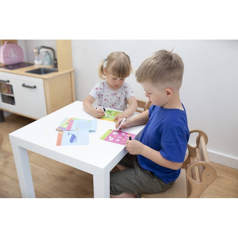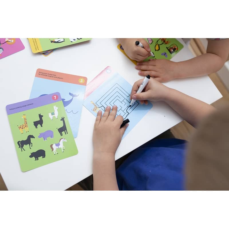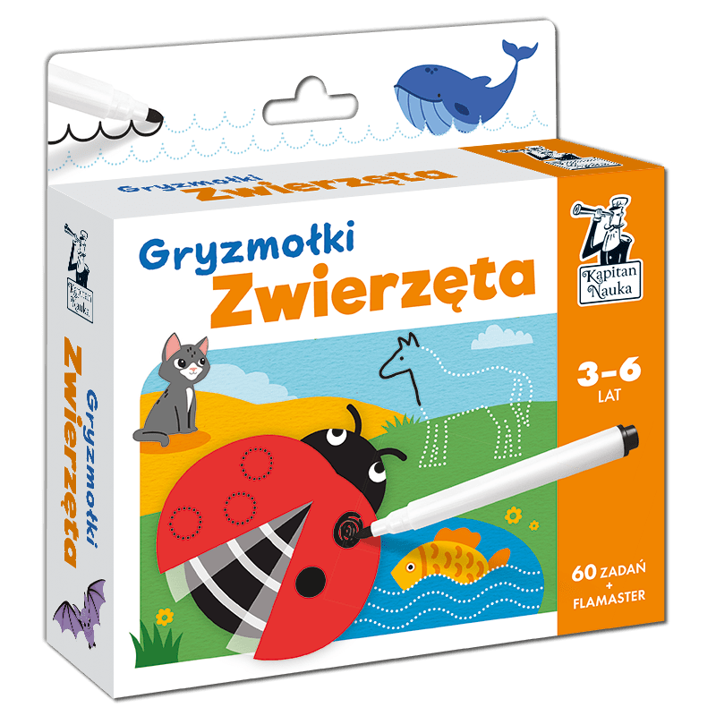Zwierzęta Gryzmołki Kapitan Nauka to karty do wielokrotnego zapisywania, które można zmazać a następnie kolejne razy zapisywać dzięki dołączonemu do zestawu mazakowi suchościeralnemu.